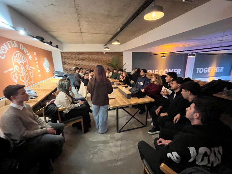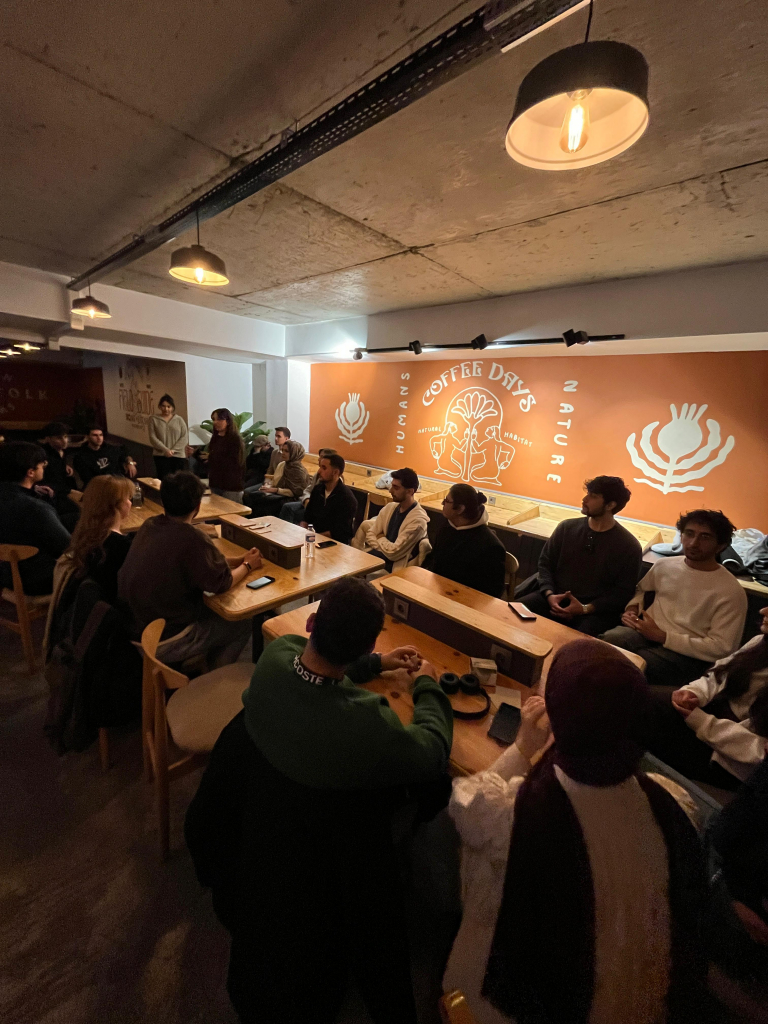 22.12.2025 tarihinde Mackbear Kafe’de öğrenci topluluğumuz tarafından düzenlenen speaking etkinliği, yaklaşık 35 katılımcının iştirakiyle başarıyla gerçekleştirilmiştir. Etkinlik kapsamında katılımcılar, yabancı dil konuşma becerilerini geliştirme ve etkileşimli bir ortamda pratik yapma imkânı bulmuştur.